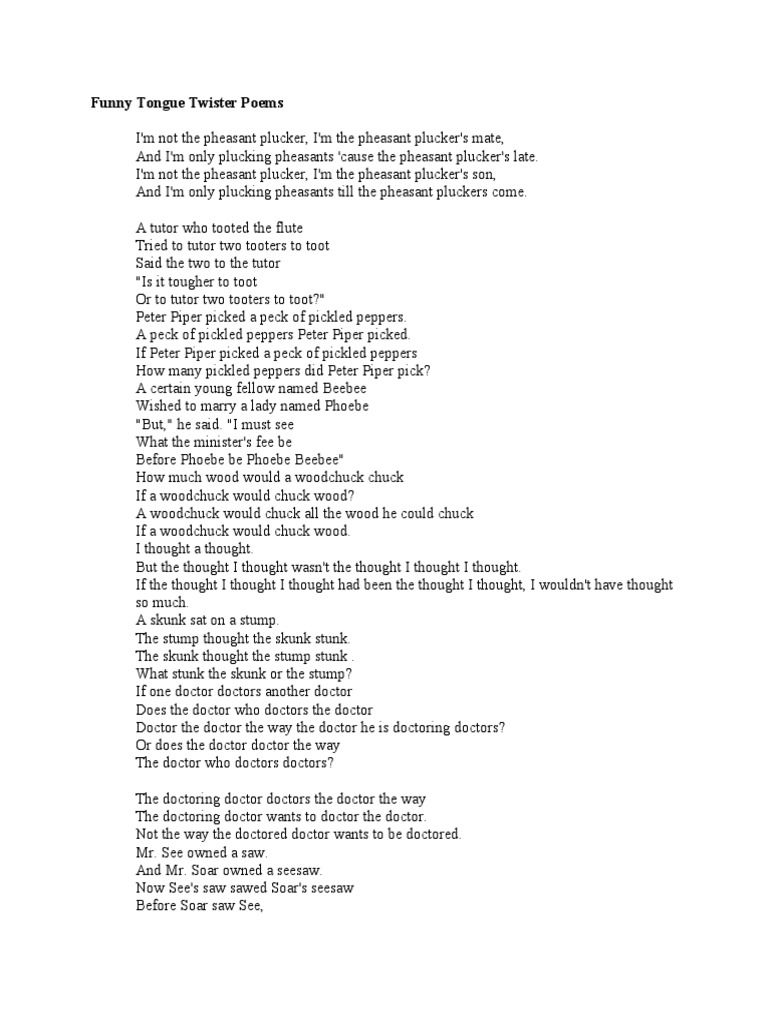 Tongue twisters from image.slidesharecdn.com What a terrible tongue twister, what a terrible tongue twister, what a terrible tongue twister. By bryant oden, who did the duck song. Английские скороговорки (tongue twisters) помогут «распутать» ваш язык и подарят пару веселых часов. s, ʃ i saw susie sitting in a shoe shine shop. Amidst the mists and coldest frosts, with stoutest wrists and loudest boasts, he thrusts his fist against the posts and still insists he sees the ghosts. Это фонетическое явление в русском языке отсутствует: Pete's pa pete poked to the pea patch to pick a peck of. Peter piper picked a peck of pickled peppers.